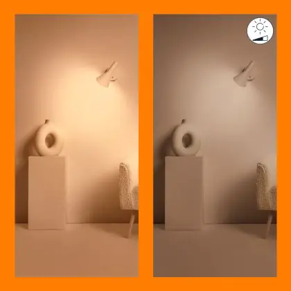 4. Dim to Warm: Durch Dimmen wird das Licht wärmer (gelber). Je stärker Sie dimmen, desto wärmer wird die Farbe.