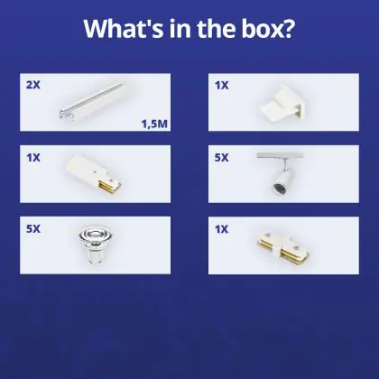 | Herstellername | Complete Straight 3-meter 1-Phase Track Set White incl. 5x Spot fixture + GU10 2700K 3W Dim – 2x 1.5 | |