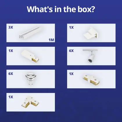 Komplettset 1-Phasen Rail L 1 x 2 Meter Weiß | incl. 6x Spot + GU10 2700K 3W Dimmbar + Abschlusskappe, Stromanschluss und L -Verbinder