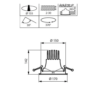 Der Ausschnitt einer Leuchte unterscheidet sich von den Abmessungen der Leuchte selbst und bezeichnet speziell die Grösse der Öffnung in der Decke, die für die sichere Montage der Lichtquelle benötigt wird.