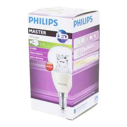 Philips MASTER LED Lustre E14 Kugel Krone Klar 5.5W 470lm - 822-827 Dim to Warm | Dimmbar - Ersatz für 40W