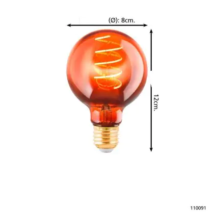 Description Eglo LED Globe E27 Filament Ambre 4W 30lm - 820 | Dimmable - Remplacement 15W