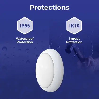 La valeur IK représente la résistance aux chocs et la protection contre le vandalisme. Elle est exprimée avec 2 chiffres (IK00 - IK10). Les produits portant la mention IK00 ne sont pas protégés contre la résistance, tandis que les produits portant la mention IK10 offrent une protection contre les impacts de 20 joules et sont également anti-vandalisme. |