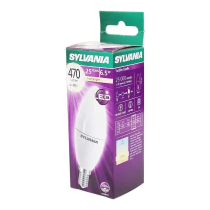 Cette ampoule Sylvania ToLEDo E14 Bougie Dépolie 5.5W 470lm - 827 | Remplacement 40W avec son efficacité lumineuse de lumen par watt vous permettra de profiter d’un éclairage de qualité. Avec sa durée de vie de 25000 heures, vous n’aurez pas à vous soucier de son remplacement avant quelques années.
